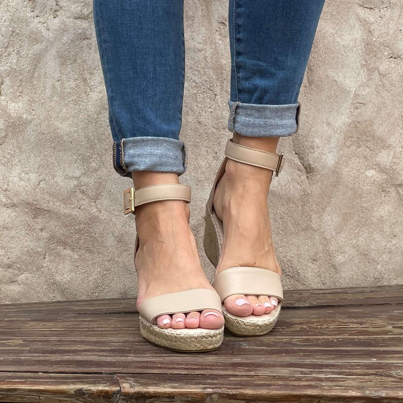 Olivia Espadrille Wedge in Sand